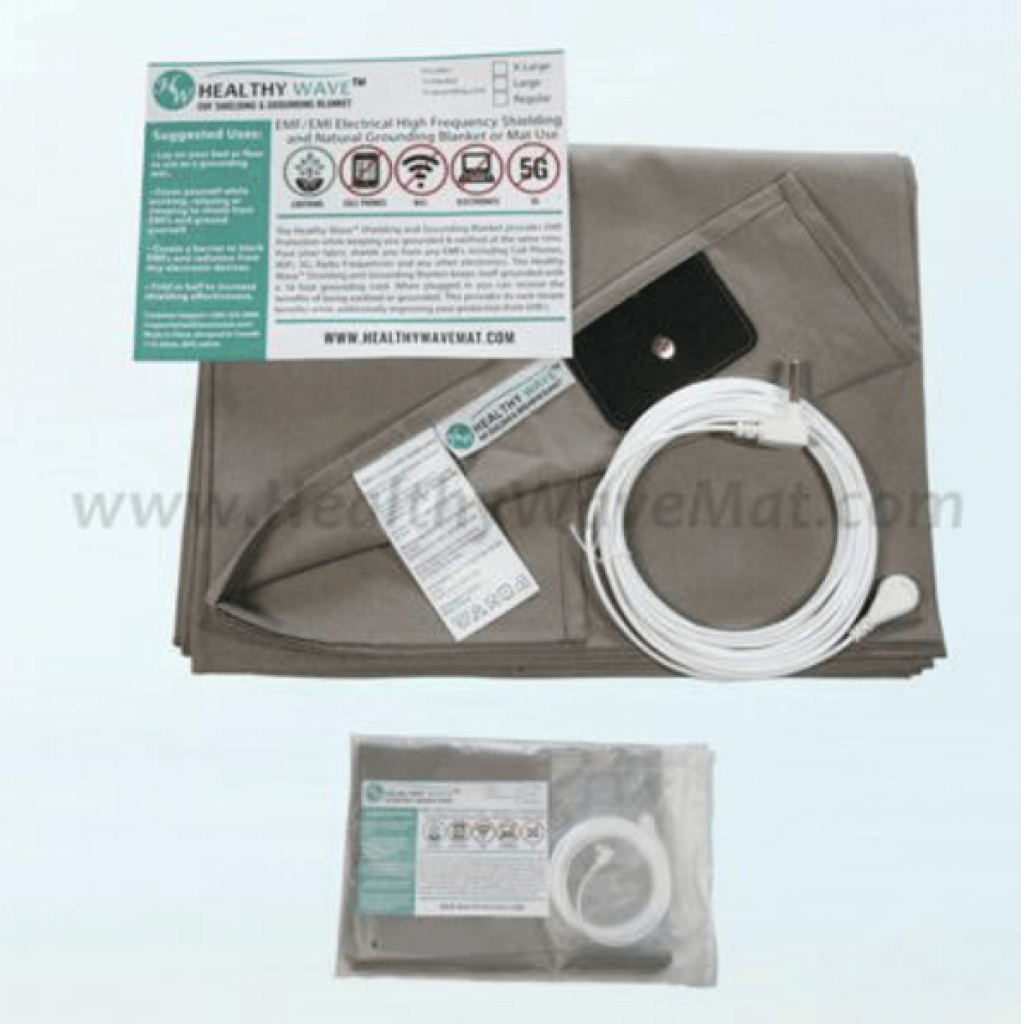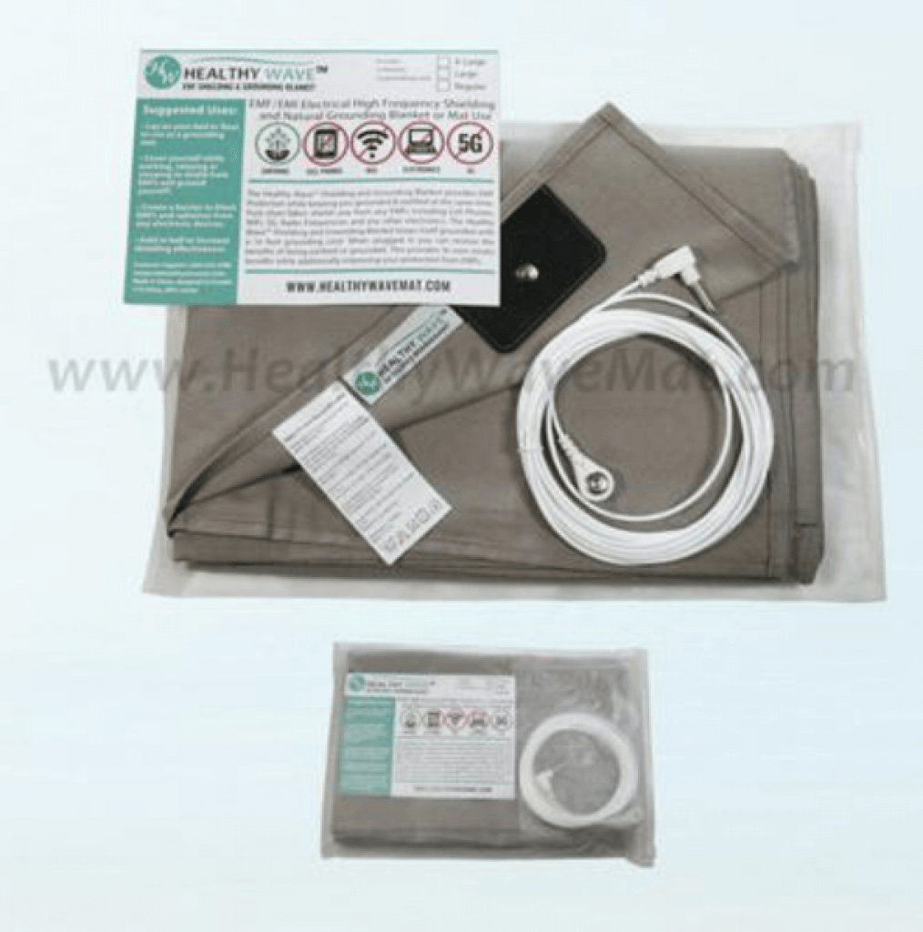 The Healthy Wave EMF/EMI Electrical Magnetic Field Shielding and Natural Grounding blankets provide EMF Protection, effective for the broad range of the high frequency harmful EMF’s including Cell Phones/5G, WiFi, Radio Frequencies and other electronics. The grounding feature of the blanket provides the intrinsic benefits of earthing/grounding the body and improves low frequency EMF’s (60 Hertz) protection by producing the “Umbrella Effect” which “reduces or pushes away electric fields from the body”.