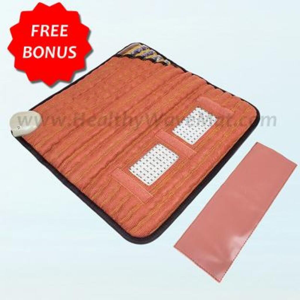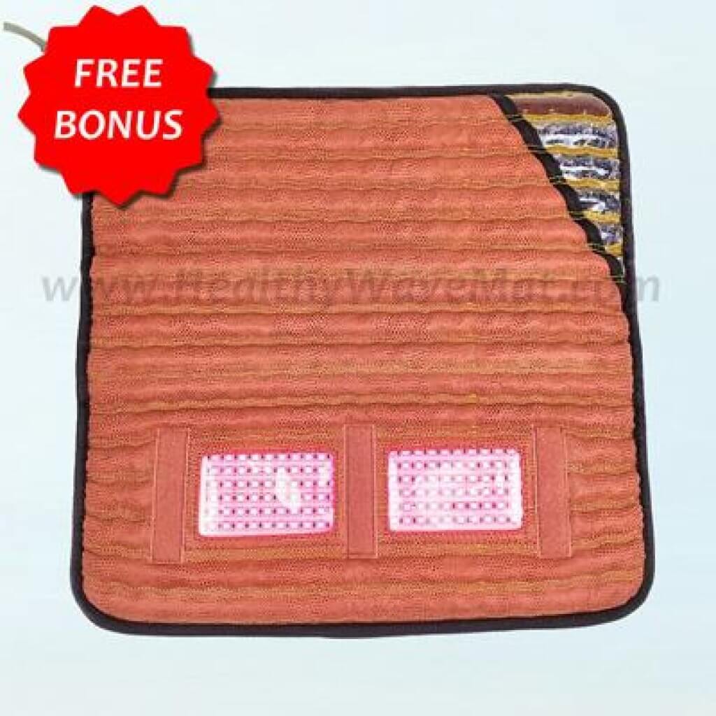 The Healthy Wave 5 Therapy Red Light, Infrared, and PEMF Pad integrates multiple wellness technologies, including PEMF therapy, infrared heat, and crystal therapy, into one comfortable, flexible mat. It offers programmable PEMF frequencies from 1 to 30 Hz, dual 600nm red light panels, and a soft, portable design ideal for applying all five therapies to different areas of the body.