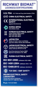 As a Korean-based company, Biomat products have various certifications for use in Korea and Japan, as well as the standard European certification for consumer use (CE) (See right for all certifications)